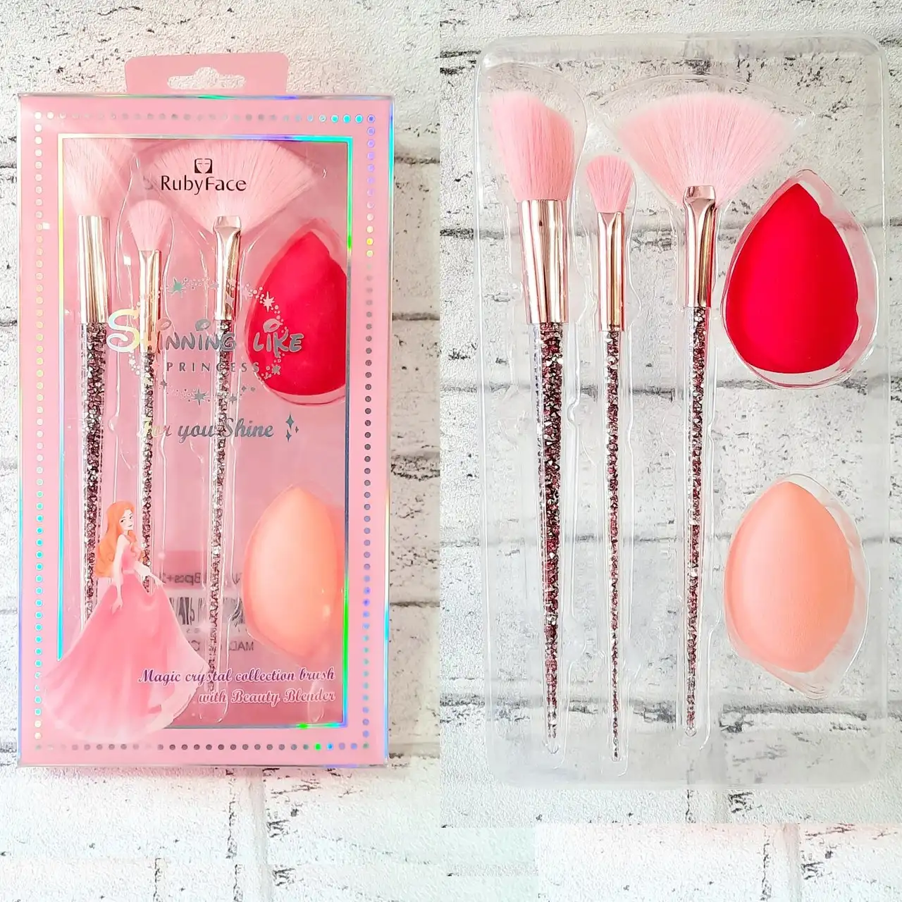 Набір пензлів та спонжиків для макіяжу Ruby Face Princess (5 предметів) рожевий