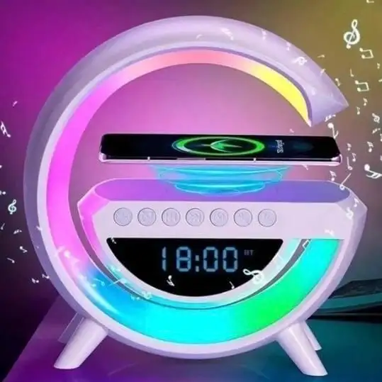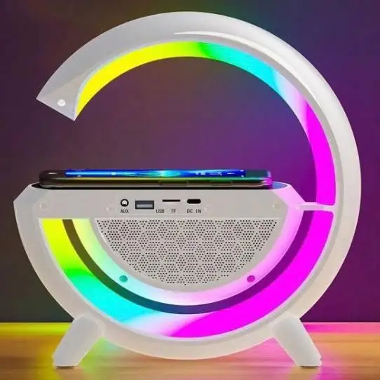Настільна лампа нічник з RGB підсвічуванням, бездротовою зарядкою та вбудованою Bluetooth колонкою